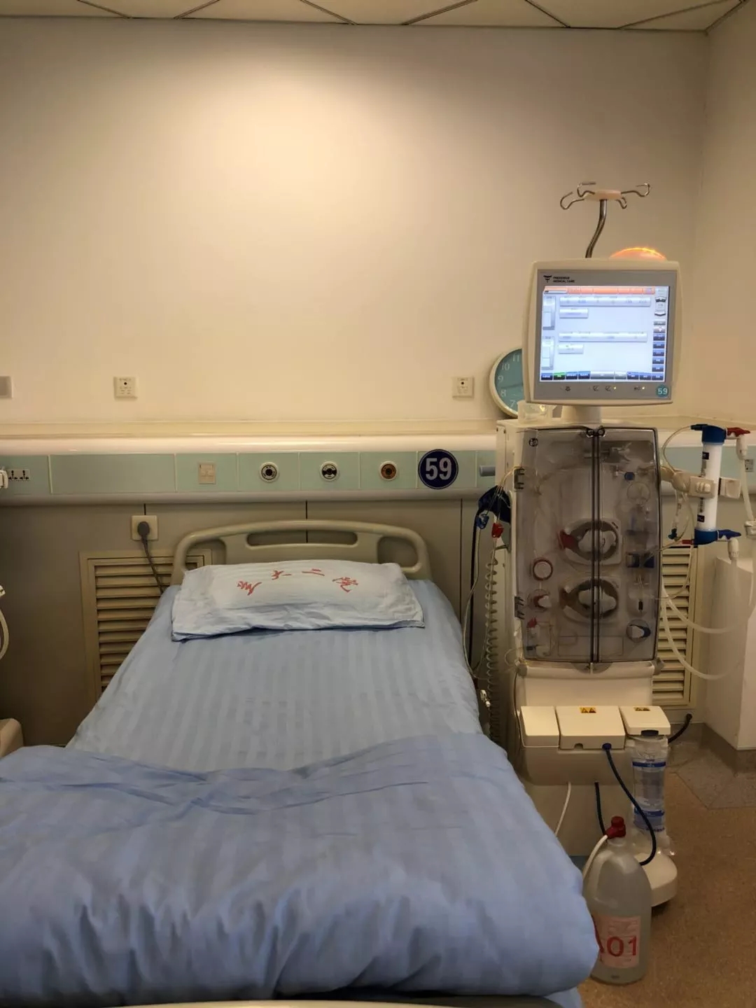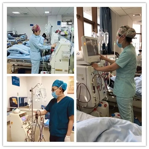 一进透析室我们便开始了“大门不出,二门不迈”的忙碌工作, 更换工作服,开启机器,安装管路,准备上机用物,迎接病人,上机引血,时刻观察病情,下机收拾废弃管路,清洁卫生,再迎接下一班的患者治疗,如此往复循环。