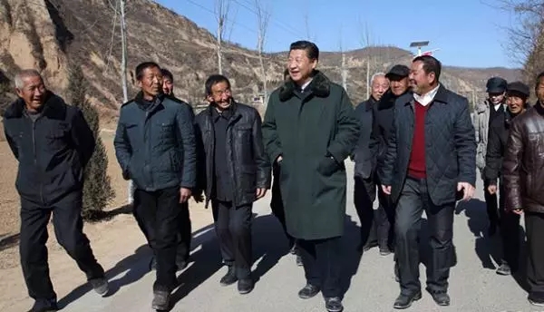 (2015年2月,习近平在梁家河村调研时同村民边走边聊。)