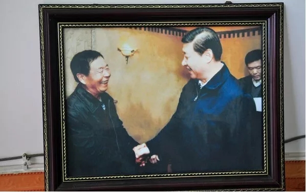(2009年,习近平在延安接见当年的入党介绍人梁玉明。)