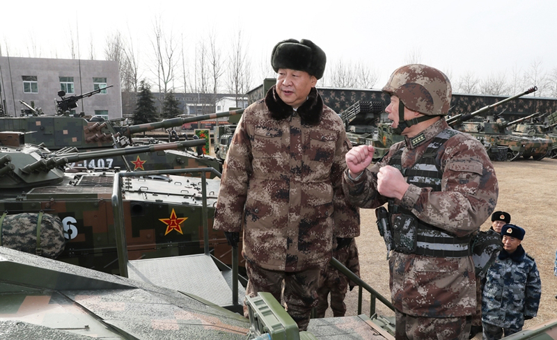 新年伊始,燕赵大地,生机盎然。3日上午10时30分许,习近平来到中部战区陆军某师。他首先察看了部队武器装备。数十台套数字化装备整齐列阵,威风凛凛,习近平边走边看,不时驻足询问。在地面突击系统装备前,习近平饶有兴致地登上99A坦克。这是我国自主研制的新一代主战坦克,有“陆战之王”美誉。在火力打击系统装备前,习近平登上红箭-10导弹发射车,详细了解装备战技性能。习近平强调,要抓住科技创新这个牛鼻子,把部队科技含量充分释放出来,把科技优势转化为能力优势、作战优势。