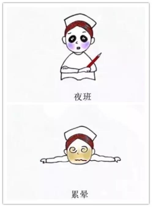 下了夜班的我,走路上连好朋友都认不出我,等我硬生生拉住他,才发现脸色蜡黄有黑眼圈,眼睛都睁不开的我和平时化妆美美的我判若两人,然后很认真的告诉我:“这下明白了医疗电视里说过的护士从红苹果、黄苹果、皱苹果、烂苹果的蜕变是什么意思”,没有哪个美女能抵挡得了夜班的摧毁。
