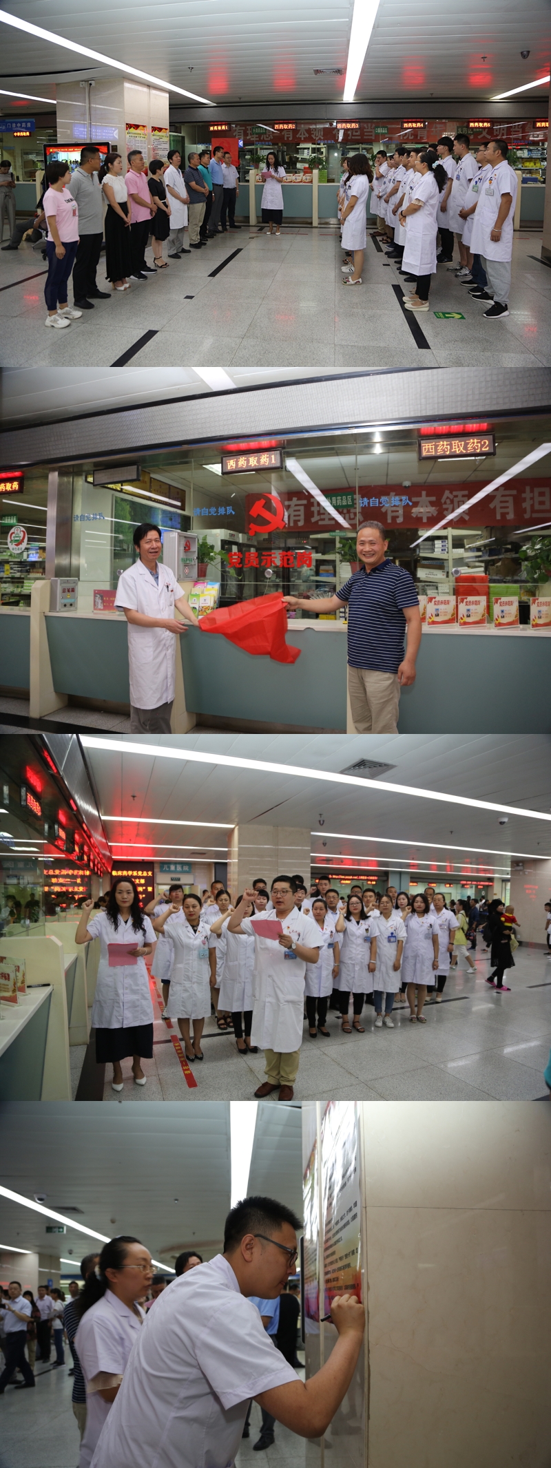 靳彩彩介绍了“党员示范岗”和“青年文明号”创建背景和意义。与会领导共同为“党员示范岗”揭牌。党员示范岗代表王睿作承诺宣誓,支部党员签订党员承诺书,活动结束后与会领导参观门诊西药房“党员示范岗”。