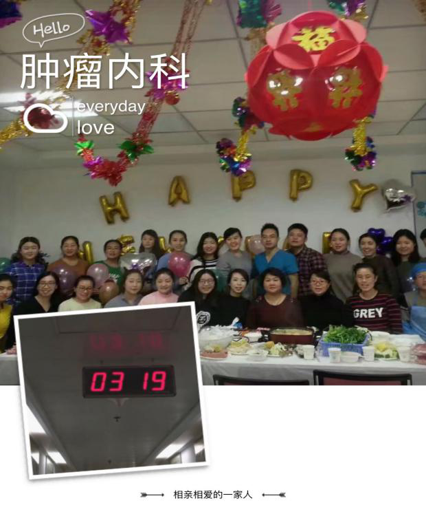 有人说:“医院的墙见证了比教堂更虔诚的祷告”。而这里,却演绎着医患间最和谐的状态。肿瘤内科这个温暖的港湾,灌注了前辈们太多的心血。一年余的时光,生命来来往往,我也读懂了这里,这里有痛却更爱,这里热情并温暖。这里的朝朝暮暮是我猝不及防的青春,却让我说着我愿意,我愿意余生都是你!