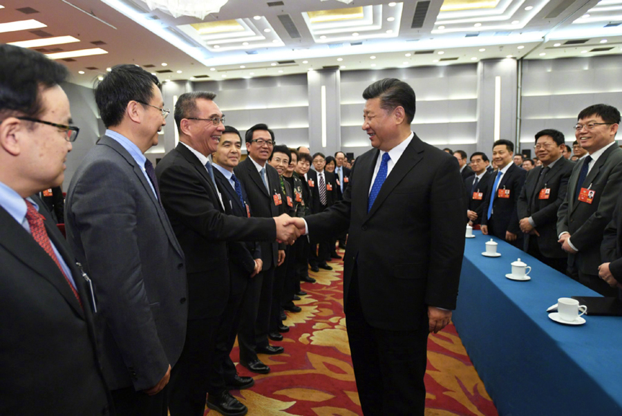 3月4日下午,中共中央总书记、国家主席、中央军委主席习近平看望参加全国政协十三届一次会议的民盟、致公党、无党派人士、侨联界委员并参加联组会,听取意见和建议。