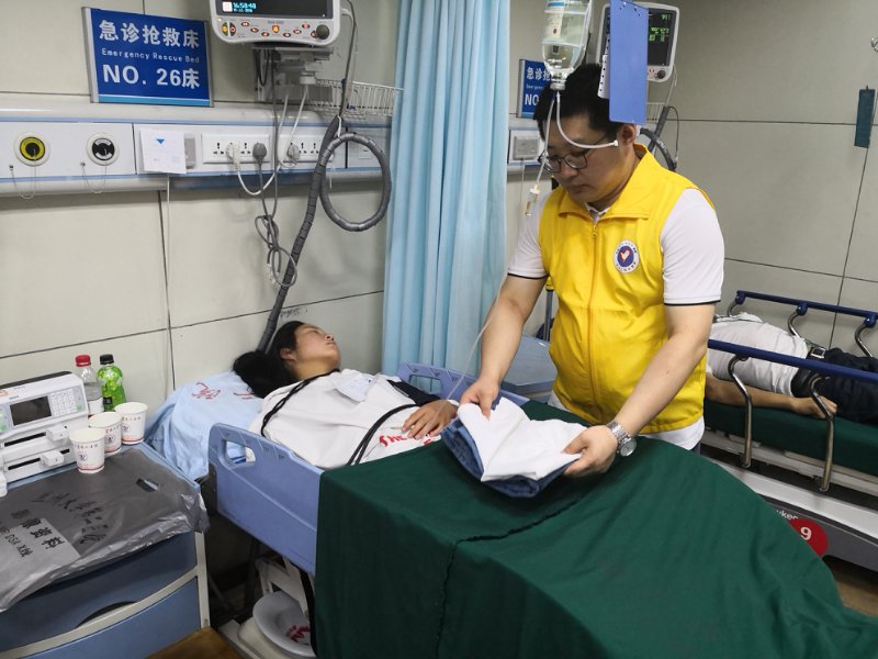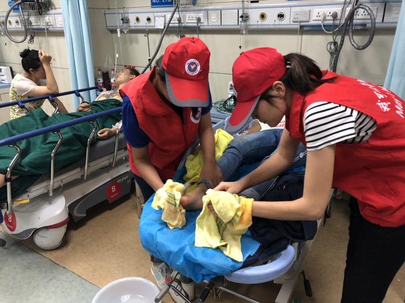 7月18日晚,甘肃省临夏回族自治州多地发生特大暴雨引发山洪,兰大二院收治17名在灾害中受伤的群众。根据院党委安排部署,院团委、护理部、门诊部志愿者办公室于7月19日早上启动志愿服务应急预案,立即安排志愿者对受伤患者进行帮助、奉献爱心,为灾区患者做义务陪护、心理疏导、为病人端水、喂饭、擦洗,配合医护人员进行救治活动。