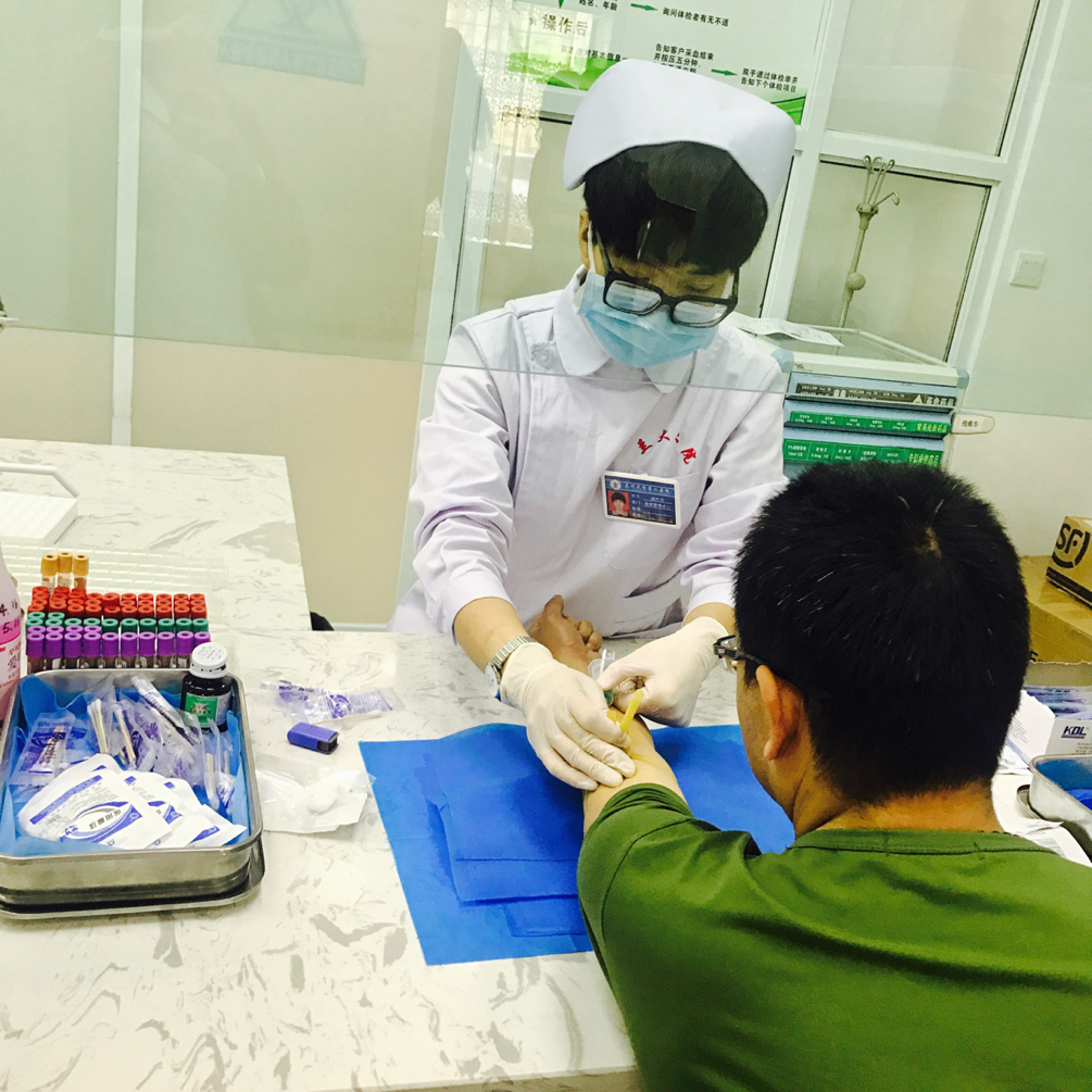 7:20刚刚交完班,两位总检主任已经巡视在走廊和各诊室间了,等候着受检者的到来…… 2楼的走廊里陆续有受检者上来,采血室的门口排起了小队,三位抽血岗位的老师早已严阵以待。采血室姚代芳老师介绍:“从核对条码信息到找血管、消毒、穿刺、核对后贴条码并按要求摆放血标本,一个步骤都不能少,每天平均350-400人次,抽血基本集中在9:30点之前,没有过硬的静脉采血技能是很难胜任这个工作岗位的。”
