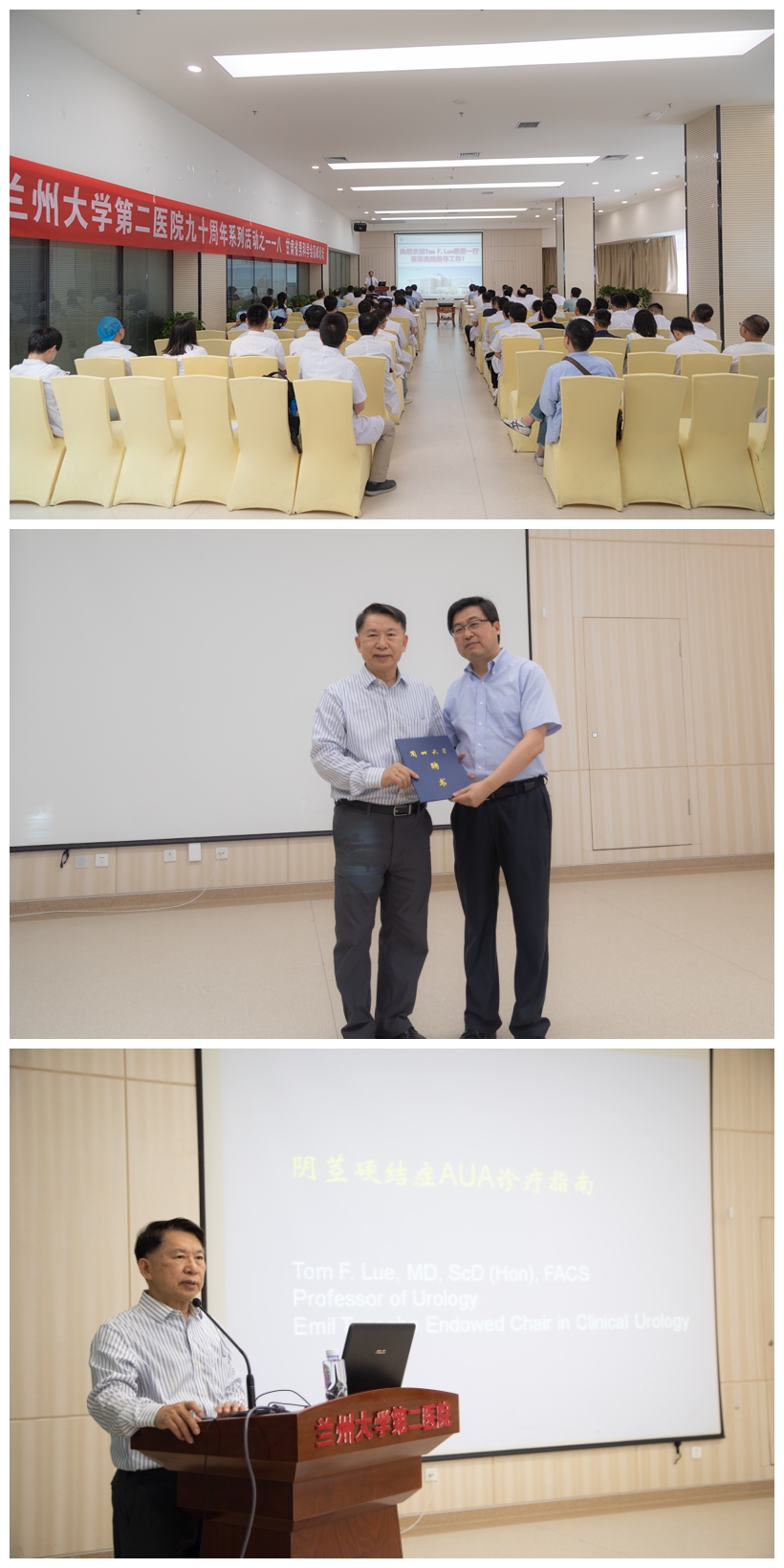 本次会议特邀北美男科学会主席和全球华人泌尿外科学会主席、美国加州大学旧金山分校泌尿外科Tom F. Lue(吕福泰)教授,我院泌尿外科王志平教授、董治龙教授分别作了题为《AUA阴茎硬结症指南:阴茎硬结症的最新进展》《兰大二院男科汇报》《男科科研与临床工作分享》的精彩报告。专家们围绕论坛的焦点“阴茎硬结症”,积极主动分享自己在临床一线中的宝贵经验以及在科研过程中发现的问题,并对典型病例进行了分析解答。同时,还就男科学的临床疑难病例进行了MDT讨论。会议中,王琛还为Tom F. Lue教授颁发兰大二院客座教授聘书。参会同仁们纷纷表示,此次会议为大家提供了一个广阔的学习交流平台,丰富了自己的临床专业知识,又开阔了眼界,收获颇多。