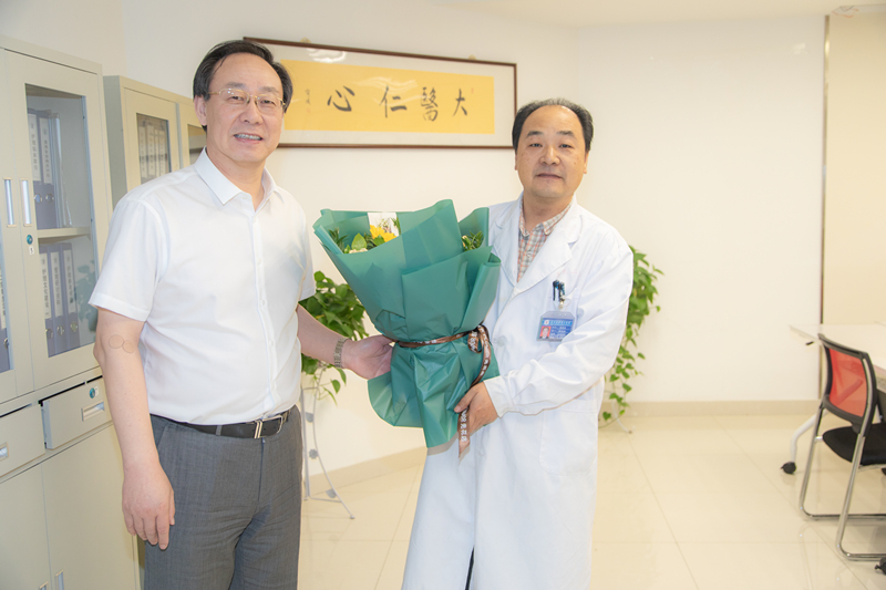 李玉民来到普外2病区,代表学校党委向始终坚守在临床一线、辛勤工作的全体教师表示深深的感谢和衷心的祝福,向我院教师代表、普外科主任张有成送上鲜花。他指出,长期以来,我院医务工作者为我省的医疗卫生事业培养和输送了许多优秀人才,付出了辛劳的汗水,充分展现了教师的崇高品格,赢得了全社会的广泛赞誉和普遍尊重。希望大家继续发扬爱岗敬业、无私奉献的高尚风范,以传道受业解惑为己任,努力为社会培养出更多有用之才,为立博欧赔指数的医学教育发展作出更大贡献。