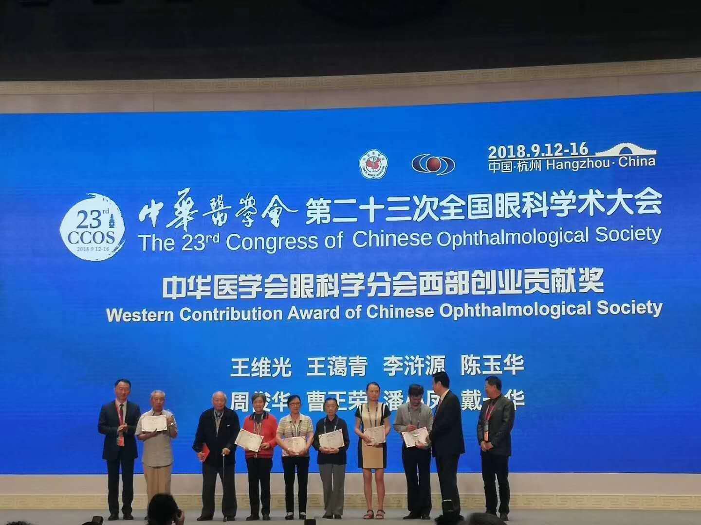 9月12—16日,由中华医学会、中华医学会眼科学分会主办的“第二十三次全国眼科学术大会”在浙江省杭州市召开,默默支援西部医疗卫生建设60余年的我院眼科老专家李浒源教授,被授予“中华医学会眼科分会西部创业贡献奖”。