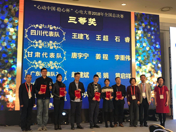 本次大赛汇聚来自全国各省市选拔的37支代表队,我院心血管内科姜程、唐宇宁,省人民医院李重伟代表甘肃省参赛。比赛由美国Thomas Jefferson大学著名心电学专家严干新教授及北京大学人民医院郭继鸿教授承担主裁判。经过两轮激烈角逐,甘肃代表队发挥出色,最终在总决赛中荣获三等奖,这是我省参赛人员首次在该项赛事中获奖。