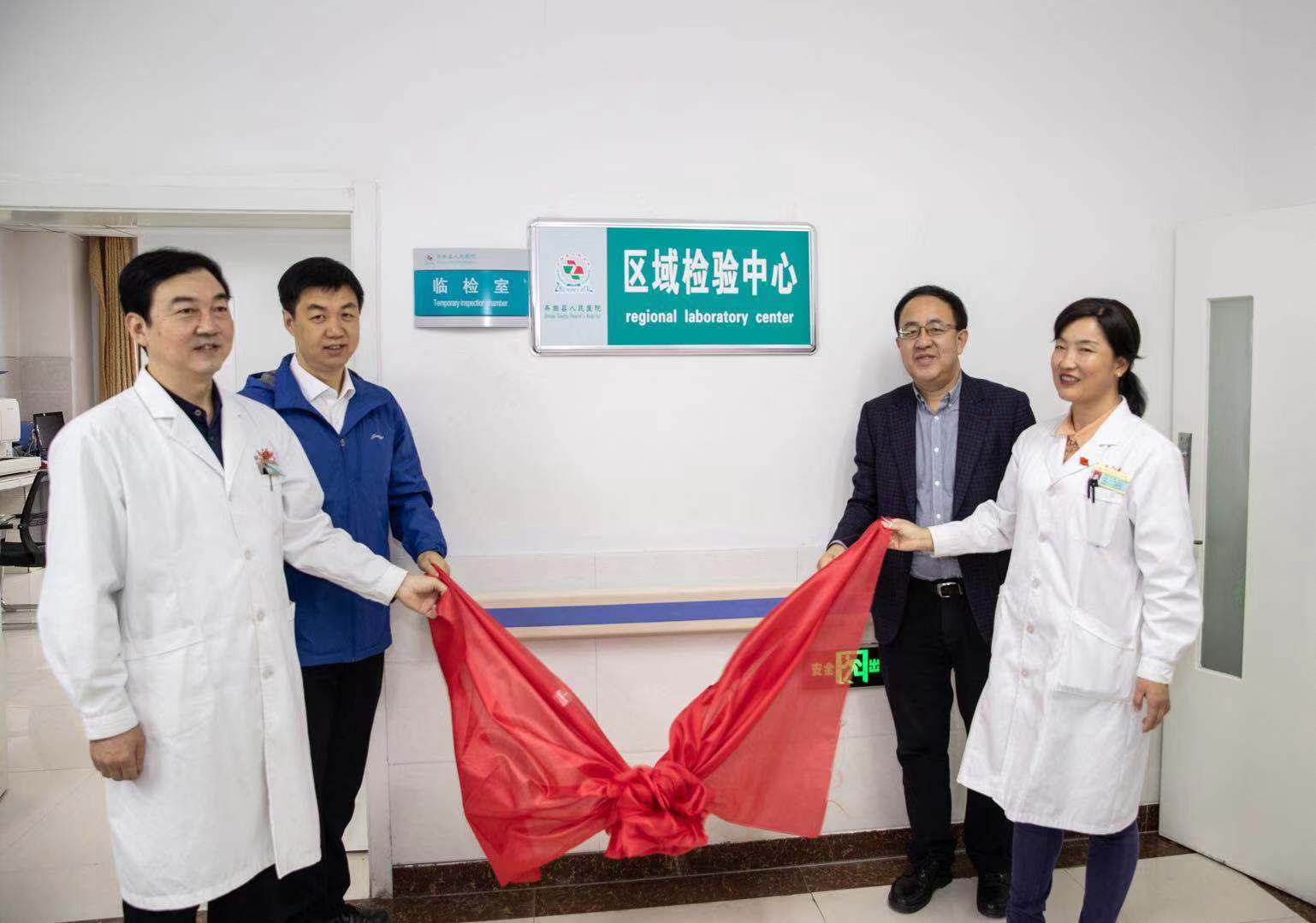 潘亚文、赵琦、邬宏亮、冯蕾及卫计局相关负责人一起为舟曲县人民医院检验、影像、心电、病理、供消区域医疗中心揭牌。