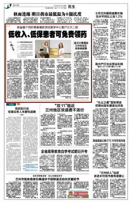 - 下一篇:【兰州晨报】丙肝患者援助项目落户兰大二院[ 10-19 ]