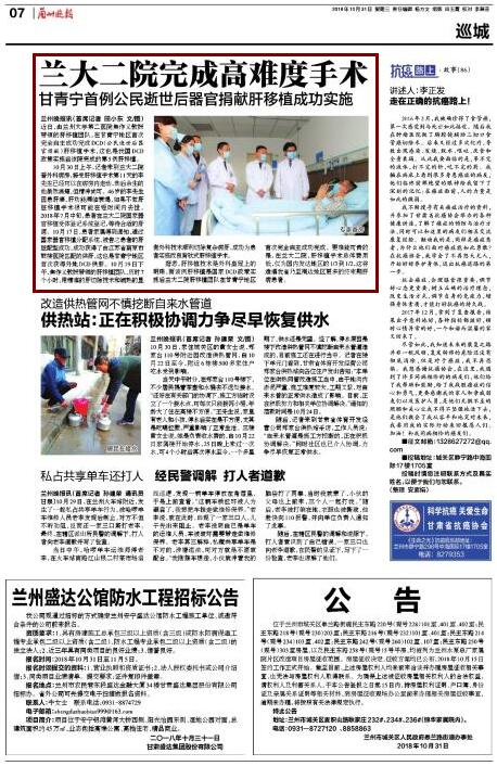 【兰州晚报】 兰大二院完成高难度手术——甘青宁首例公民逝世后器官捐献肝移植成功实施