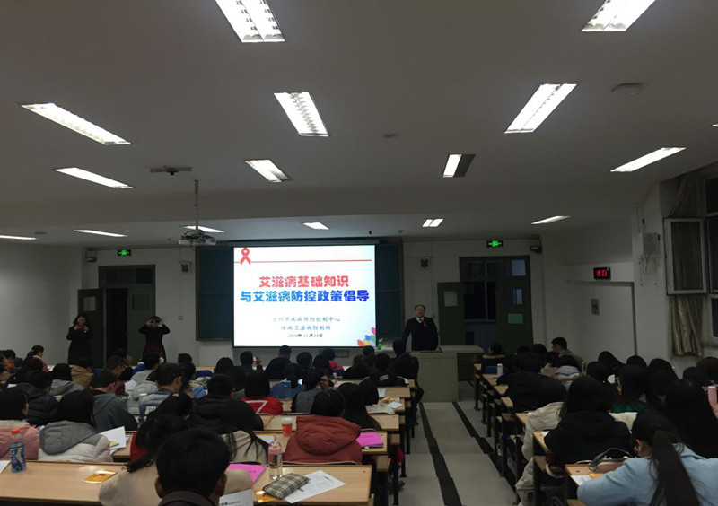 讲座特邀兰州市疾病预防控制中心艾滋病预防控制所所长陈继军,他针对高校学生感染艾滋病的新闻层出不穷,大学校园何以成为艾滋病的重灾区?这不仅是我们需要思考的问题,更是我们需要面对、需要以实际行动来应对的等问题,进行全方位的解答。此外,他还讲解了艾滋病的基础知识、青年学生感染艾滋病的现状、流行趋势、防治策略等内容。同时,公卫科向全院学生发放艾滋病宣传彩页,教师和学生普及一些较模糊的认识,知道了对待HIV感染者、艾滋病人不应歧视,有效提高了艾滋病防治知识的知晓率。