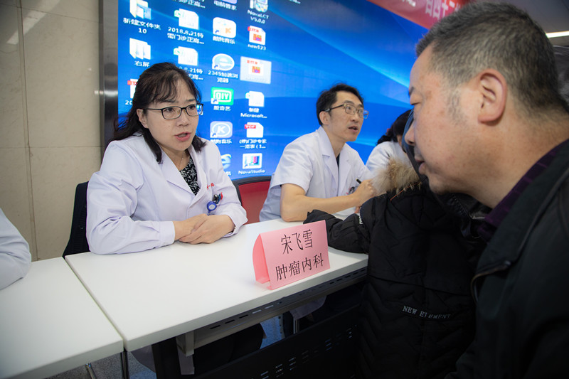 11月24日,我院肿瘤中心在门诊大厅举办大型义诊宣教活动。肿瘤中心主任陈昊、肿瘤内科病区主任宋飞雪、放疗科病区主任孙鹏飞、伽马刀治疗病区主任李桂香等相关科室专家、医护人员参加此次活动。