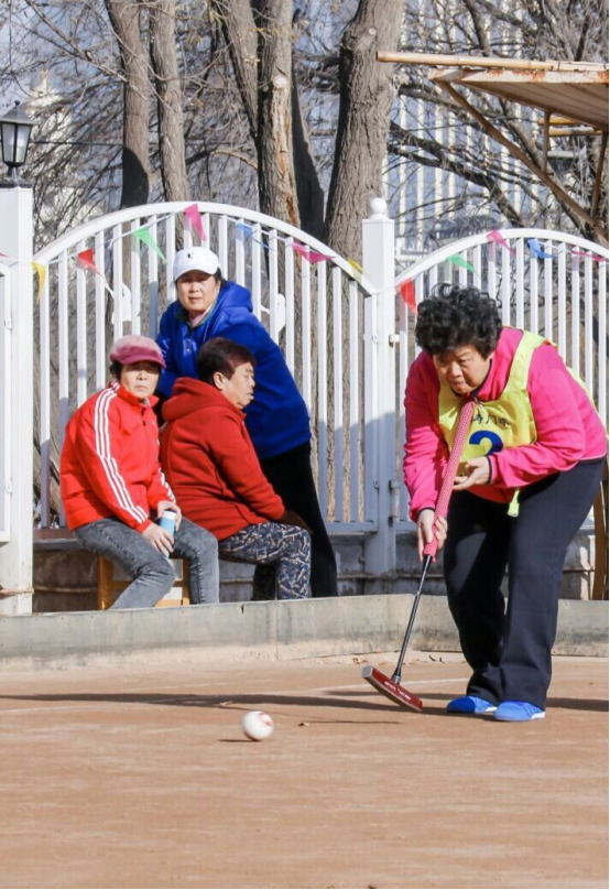 我院老年门球队由7名队员组成,比赛中队员们冒着严寒,手握球棒,经过团结协作,相互配合,以标准的动作、精彩表现得到观赛群众的喝彩声。