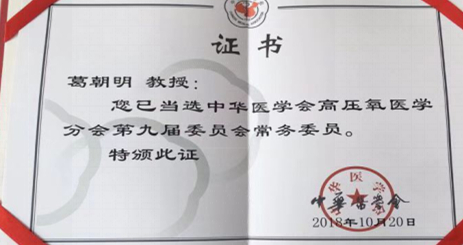 【喜讯】兰大二院葛朝明教授当选为中华医学会高压氧医学分会第九届委员常务委员