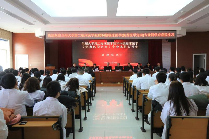 12月26日,第二临床医学院2014级临床医学(免费医学定向)专业学生共计141人,赴兰大二院定西医院开始为期20周的基层医院实习。医院召开大会欢迎实习生,医院党委书记马启明、院长李如尧、副院长李淑梅及科教部全体工作人员、第二临床医学院学院各科室负责人及2014级辅导员参加会议。