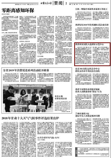 【甘肃经济日报】我省两家医院入选国家示范中心