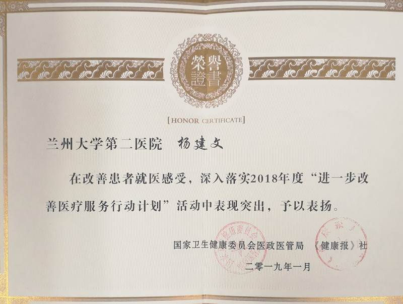 兰大二院在“进一步改善医疗服务行动计划”活动中受到表扬