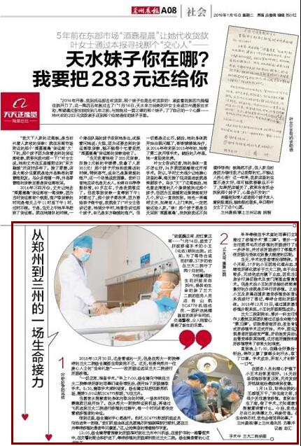 - 上一篇:【甘肃经济网】从郑州到兰州 一场生命接力 跨越1000公里让37岁青年迎来新生[ 01-15 ]