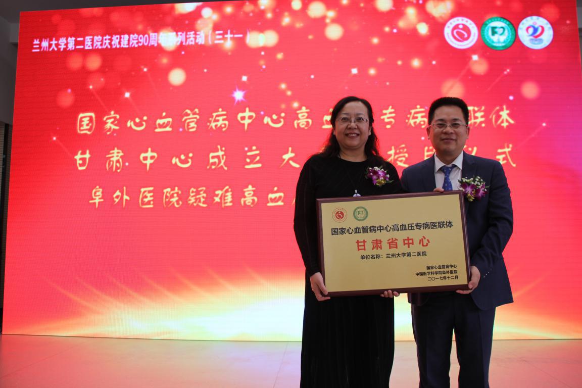 4月27日,由国家心血管病中心、中国医学科学院北京阜外医院、兰大二院共同主办的“国家心血管病中心高血压专病医联体甘肃中心成立大会暨授牌仪式”在我院举行,标志着国家心血管病中心高血压专病医联体甘肃中心正式落户我院。