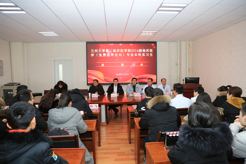 1月17日,兰大二院党委副书记、第二临床医学院党委书记兼执行院长张连生一行赴定西医院看望正在实习的2014级订单定向本科实习生并召开师生座谈会,定西市人民医院院长李如尧、副院长李淑梅、科教部部长孙利国,学院各科室负责人、2014级辅导员及实习生代表参加座谈。会议由学院党委副书记畅兆锋主持。