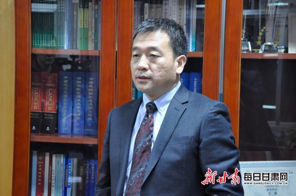 兰大二院党委书记杨建文向记者讲述2018年精准扶贫工作开展情况。 每日甘肃网记者 王彬摄