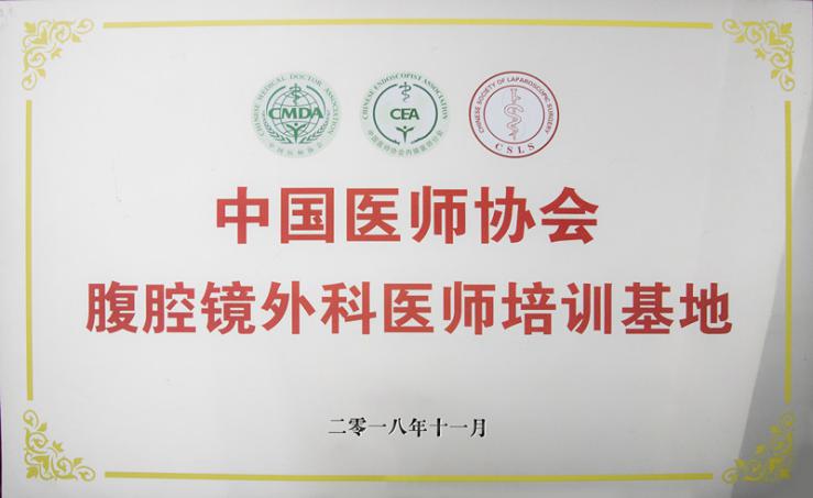 11月,由中国医师协会、中国医师协会内镜分会、中国工程院医镜整合联盟联合主办的“2018中国内镜医师大会”在杭州举行。会上,中国医师协会腹腔镜培训学院及中国医师协会内镜医师分会的评审专家组对全国范围内通过腹腔镜基地认证的86家医院给予授牌仪式,我院获此殊荣成为中国医师协会首批腹腔镜外科医师培训基地。