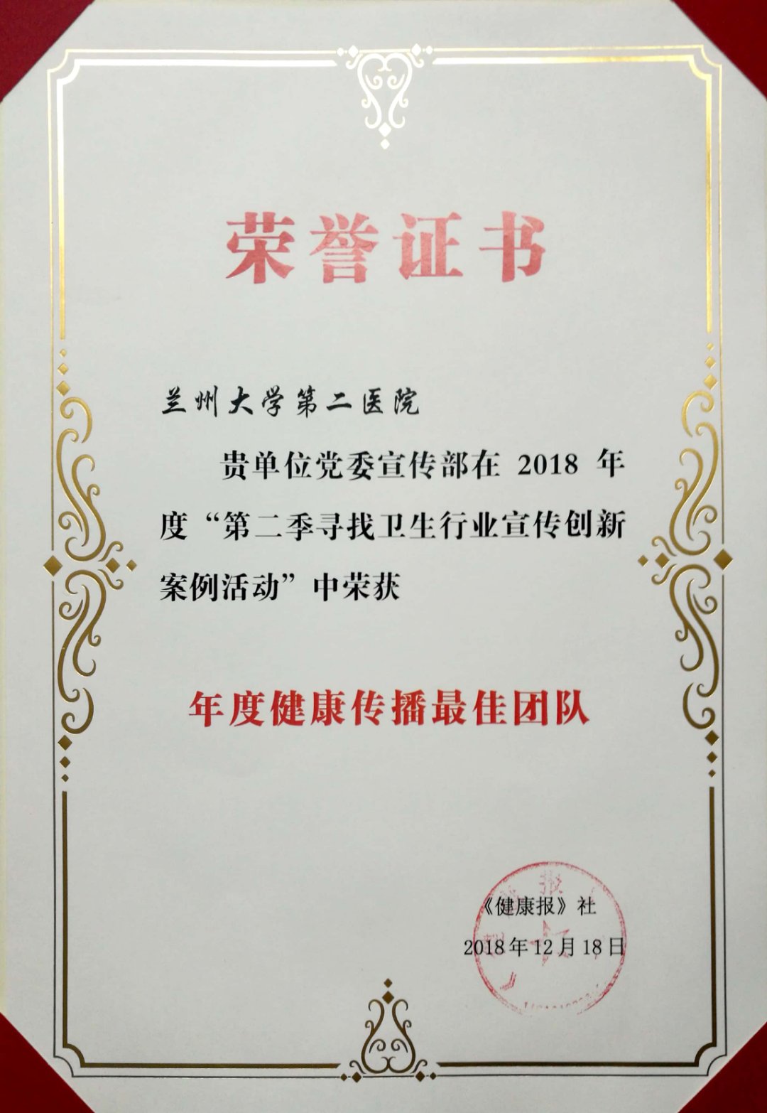 12月28日,《健康报》社第二季寻找卫生行业宣传创新案例活动总结会在四川德阳举行。我院党委宣传部荣获“年度健康传播最佳团队”,微信公众平台和《兰大二院报》荣获“年度健康传播最佳案例”。
