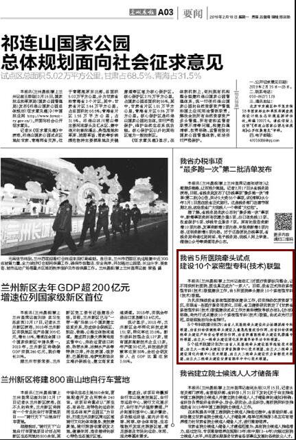 【兰州晨报】我省5所医院牵头试点 建设10个紧密型专科(技术)联盟