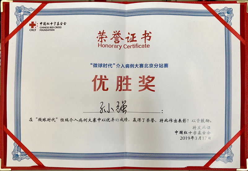 3月15日,由中国抗癌协会肿瘤介入学专业委员会主办的第十届中国肿瘤介入与微创治疗大会在北京举行。会上,来自全国各地的青年介入医师参加了由中国红十字基金会承办的“微球时代”介入病例大赛北京分站赛,我院肿瘤中心介入科病区孙强医师在比赛中喜获优胜奖。