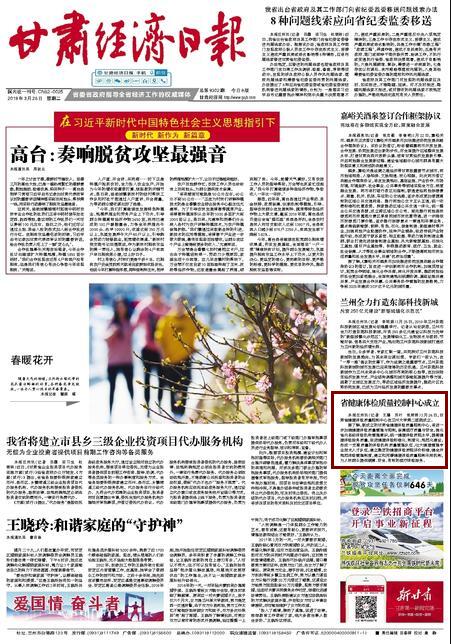 - 下一篇:【兰州晨报】不推荐“菜单式”体检 要把有能力的专家放在体检中心[ 03-26 ]