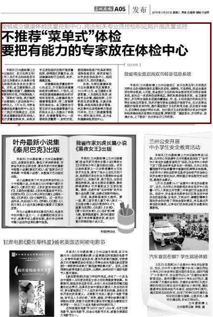 【兰州晨报】不推荐“菜单式”体检 要把有能力的专家放在体检中心