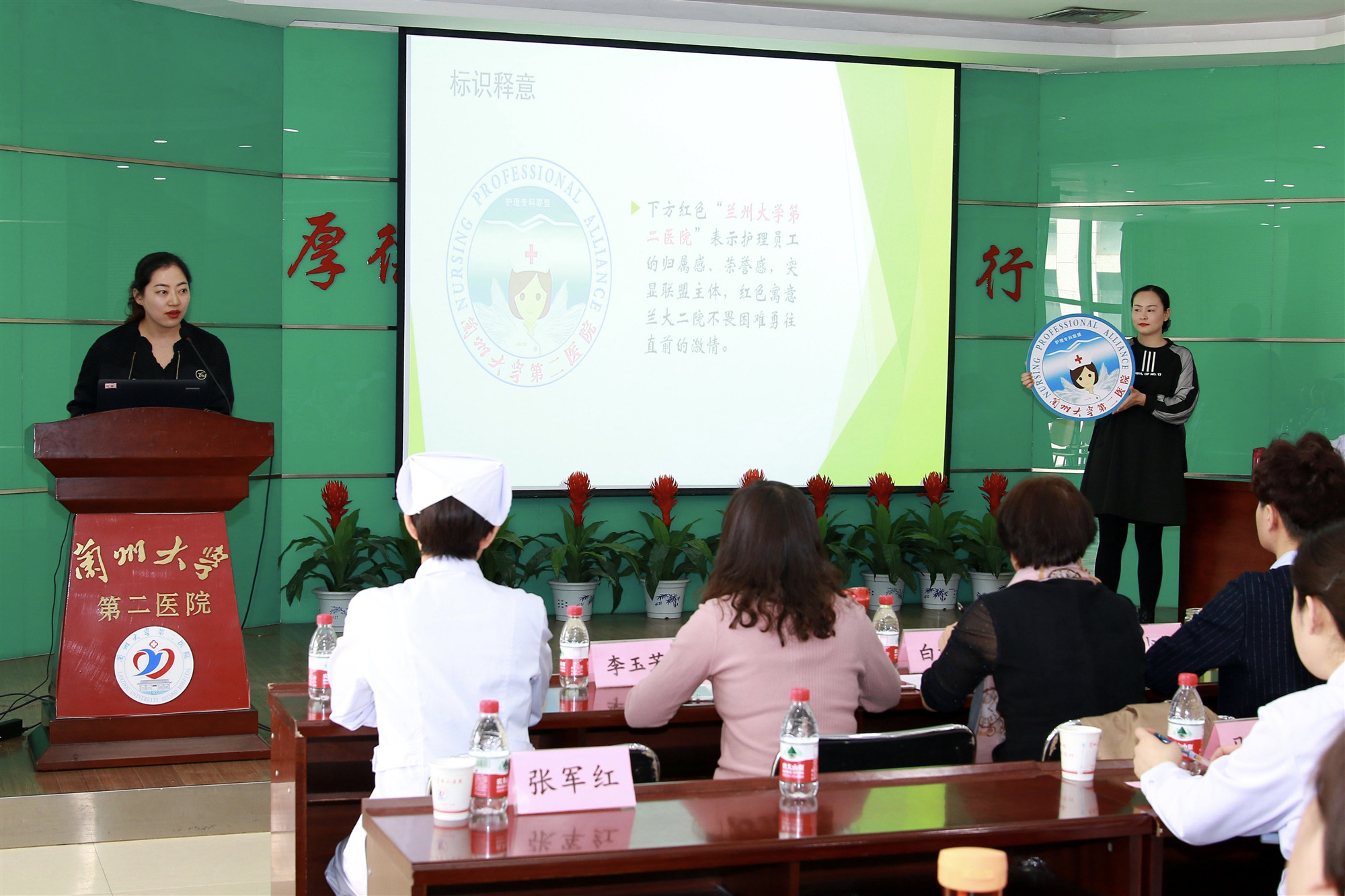 3月29日下午,护理部在会议室(三)举办兰大二院护理专科联盟标识(LOGO)设计大赛。大赛邀请护理联盟单位的护理部主任、副主任担任评委,护士代表及进修护士100余人参加了会议。会议由我院护理部副主任高祝英主持。