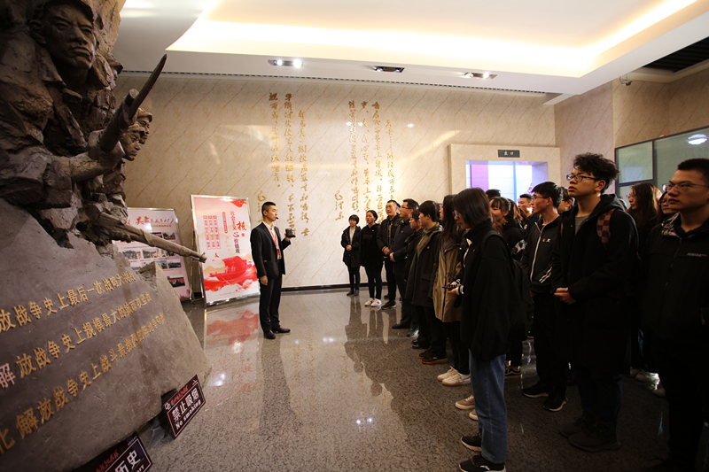 在烈士纪念碑前,同学们怀着崇敬的心情肃立默哀,团员代表向长眠在华林山烈士陵园,为解放兰州和大西北献出宝贵生命的烈士敬献花圈,随后全体同学依次列队近前瞻仰烈士纪念碑并敬献花朵。默哀仪式结束后,全体人员参观了《兰州战役纪念馆》,全面了解放兰州主战场的主要过程,大量的文字手稿、图片、油画,珍贵的历史文物,丰富的多媒体展示,带给同学们强烈的视觉冲击和心灵震撼,让大家在走近一个个鲜活生动的英雄人物,接受了一次深刻的革命传统教育和爱国主义教育。