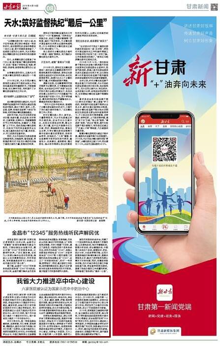 【甘肃日报】我省大力推进卒中中心建设——我院被认证为六家医院国家示范卒中防治中心