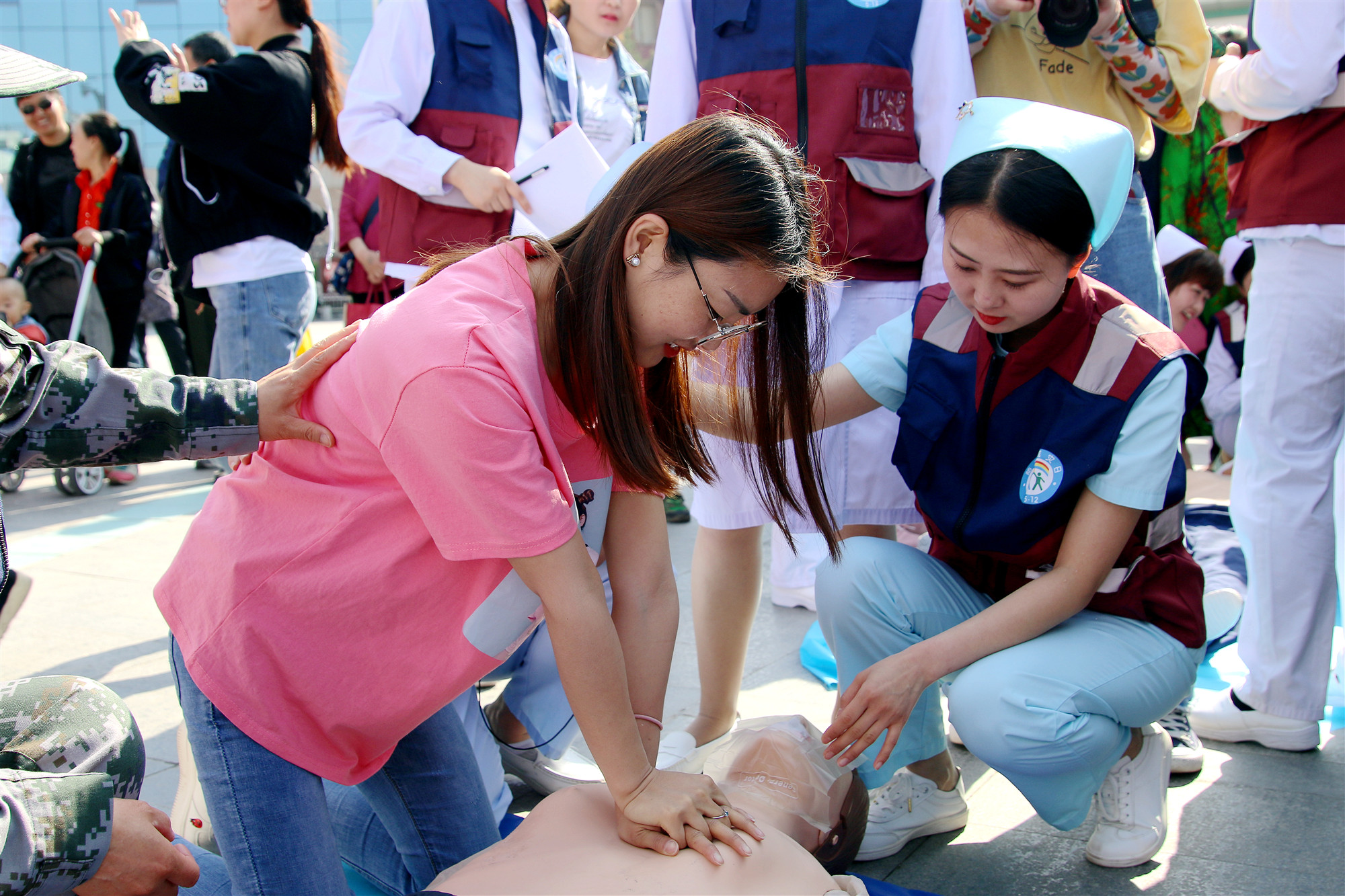 我院护士重点负责心肺复苏技术示范,通过整体急救流程演示及分解动作重点解说,向在场群众讲解了心肺复苏急救的时机、手法、注意事项等。现场民众积极参与互动学习,护士们耐心指导动作要领,并为群众发放各类宣传资料,详细讲解有关防灾减灾、自救互救方面的知识,还为他们量血压、测血糖、讲解常见疾病知识,受到周围群众一致好评。