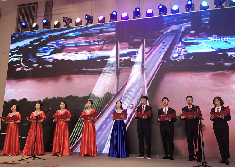 “孤烟大漠,落日黄河;丝绸古道,驼铃悠扬;这是甘肃,这是甘肃核医学人。时光荏苒,已是四代芳华,屹立西北,奋发激昂,我们来自母亲河畔,唱响甘肃,唱响甘肃核医学”。在主持人深情洋溢的介绍中,壮丽绚美的甘肃风光慢慢浮现,悠扬的音乐传播在每一个角落,由我院组织策划的甘肃代表队登上舞台。代表队以诗朗诵和小合唱的形式对《中国核医学会歌》进行了倾情演绎,经过精心编排的节目形式新颖独特,既表现出歌曲优美大气、激情澎湃的风格,又展现出甘肃核医学人团结一心,努力拼搏的精神面貌,受到了学会多位领导的点名表扬和同行专家的高度认可,最终喜获优胜奖。