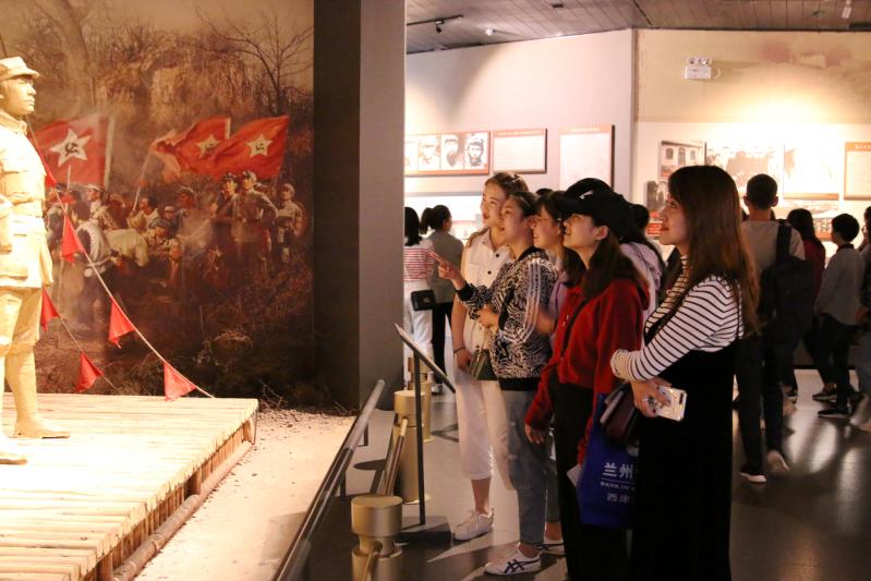 “红色甘肃”主题展览,通过火种篇、抗争篇、铁流篇、激荡篇、曙光篇五个单元,系列地反映了在风起云涌的革命年代,甘肃各地人民是如何在中国共产党的领导下,一步步走向辉煌的伟大革命历程。在党员重温入党誓词的环节中,团员青年备受鼓舞,更加坚定今后提升自己,努力向党组织靠拢成为共产党员的信念。通过参观,大家对甘肃革命斗争史以及革命先烈的英勇事迹有了全面了解,对革命先辈精神的实质内涵有了更加直观的感性认识和更加深刻的理性思考,真切体会到艰苦卓绝的斗争环境下革命先烈不屈不挠的革命精神。甘肃是一个具有光荣革命传统的省份。无数革命先辈曾在甘肃这片土地上浴血奋战,为中国革命事业和解放事业的胜利立下了历史功勋。同时,也给甘肃留下了众多宝贵的革命遗址。通过一副副真实的历史照片、一件件珍贵的战争实物,使广大青年了解到甘肃特支的成立、南梁烽火的燃起、陕甘根据地的创建、红军长征胜利会师、西路军鏖战河西以及甘肃全境解放等一系列重大历史事件,大家对甘肃深厚的红色文化有了更加深刻的了解,也激发了心中强烈的民族自信心和自豪感。