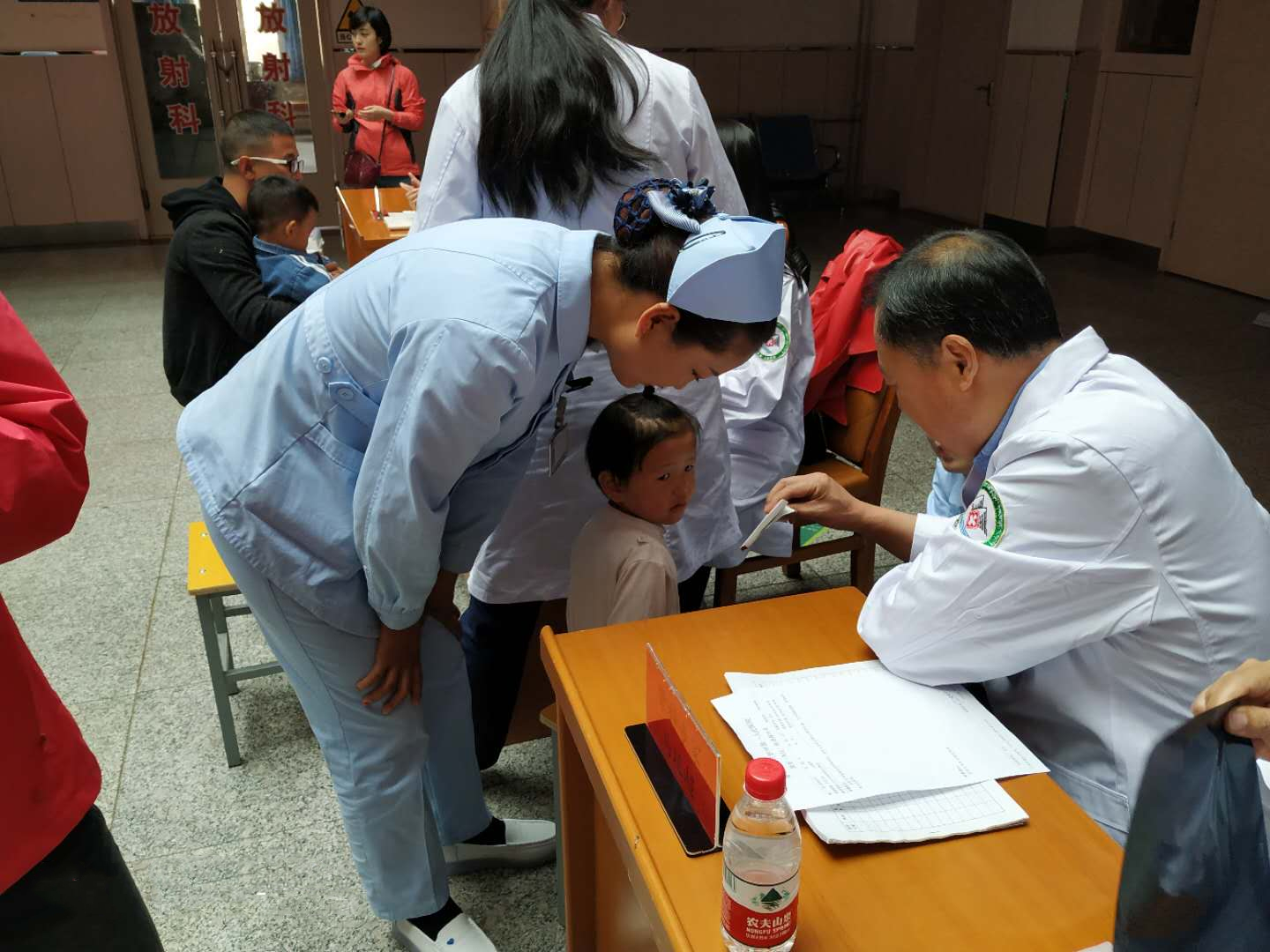 活动中,一位在母亲怀中的小女孩哭闹不止,这引起了骨科马延超副主任医师的注意,经过询问及现场检查,确诊为桡骨小头半脱位。随着“咔”的复位声响起,小女孩逐渐停止了哭闹,依偎在母亲的怀中甜甜入睡,小女孩的母亲拉着马彦超医师的手,一直说着“谢谢”、“谢谢”。