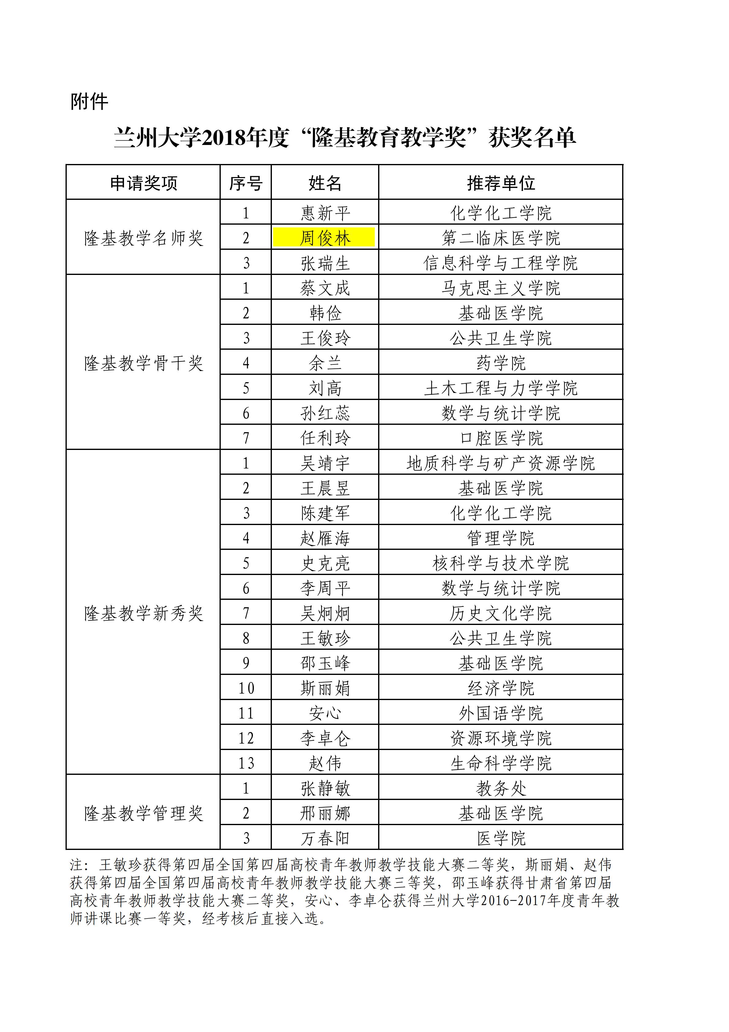 【喜讯】兰大二院周俊林荣获立博欧赔指数2018年度“隆基教学名师奖”