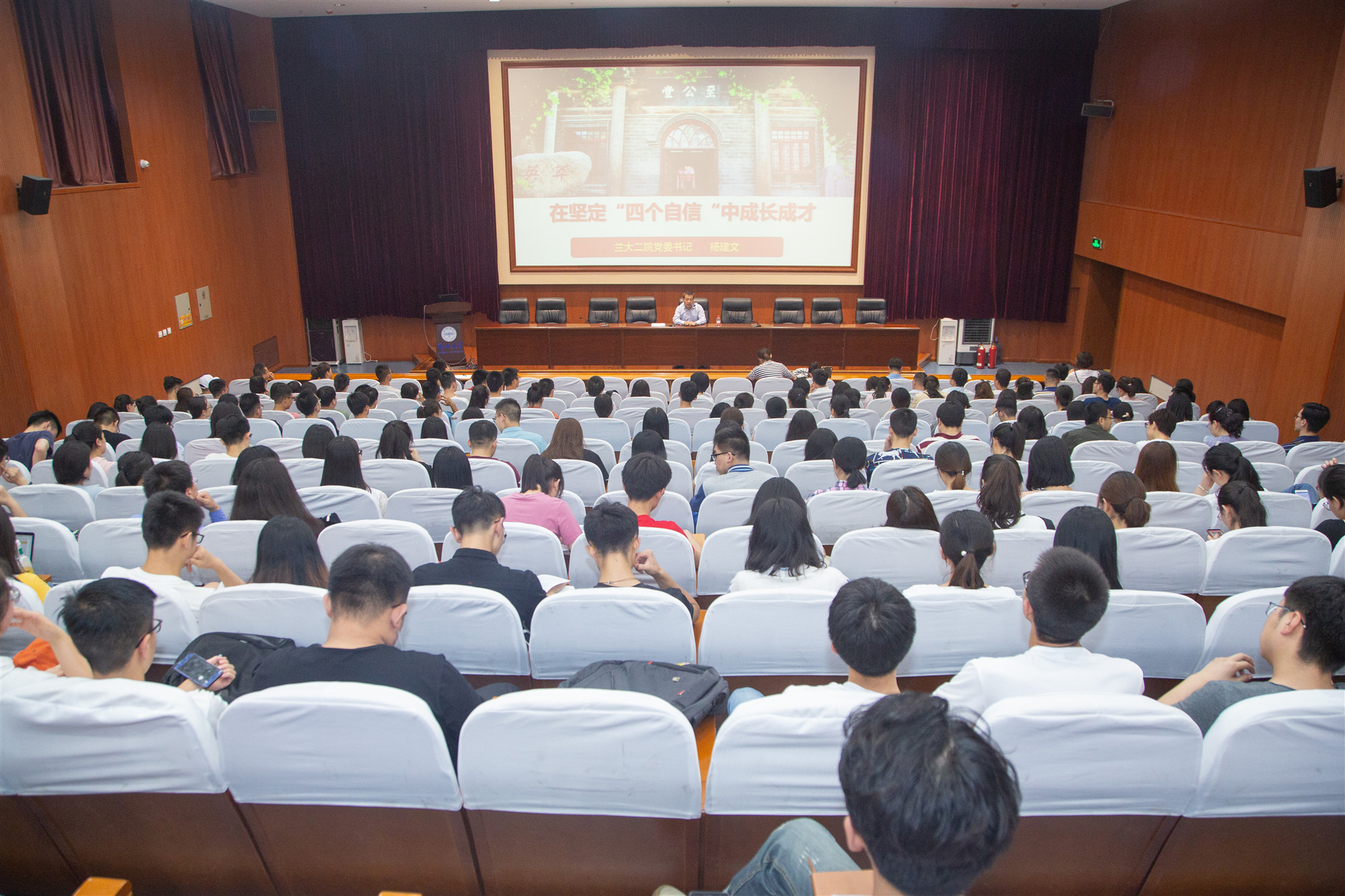 杨建文以《在坚定“四个自信”中成长成才》为题,首先对新时代的基本内涵、根本性质等作了系统深刻的阐述,为如何看待我们所处的新时代,提供了基本遵循。接着他从党的历史使命、党的建设、“四个自信”、大学生成长成才四个角度,通过丰富的理论知识,结合具体详尽的事例、时事热点和视频影像深入浅出地进行了阐释。最后他强调了习近平在纪念五四运动100周年大会上的讲话中对青年的期望和要求,希望广大青年树立远大理想、热爱伟大祖国、担当时代责任、勇于砥砺奋斗、练就过硬本领、锤炼品德修为,努力成为德智体美劳全面发展的时代新人。