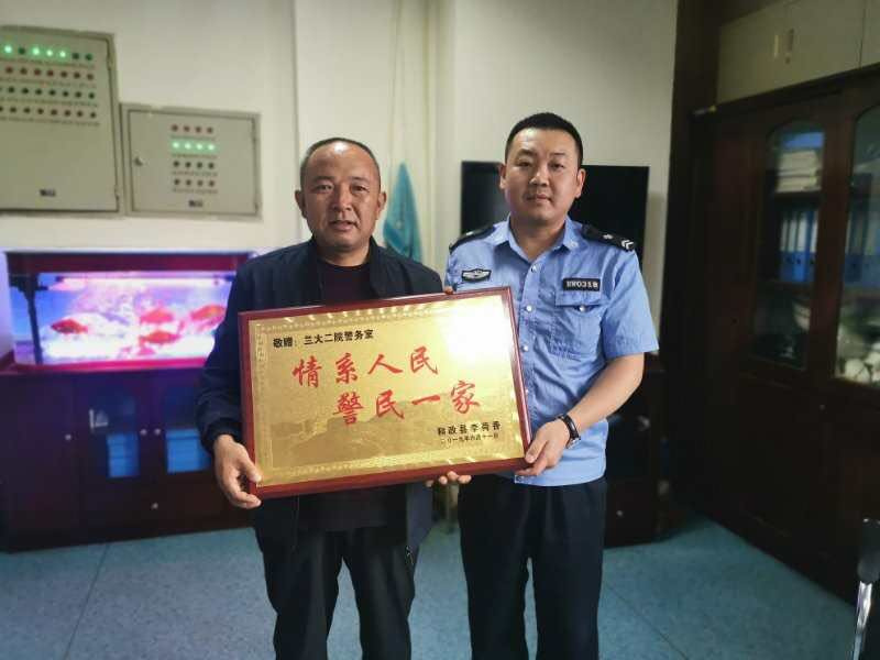 “真的是太感谢你们了,没想到丢失的东西还能找回来”。6月11日上午,在我院住院部警务室内,一幕感人的画面正在上演,来自临夏和政县的患者杨某激动地紧握治安人员符峰的双手,并特地送上“情系人民 警民一家”的牌匾以表达自己的感激之情。
