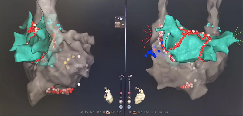 患者,男性,56岁,明确诊断为持续性房颤。入院后,心血管内科医务人员立即开展病情讨论,并制定详细周密的手术计划,同时在患者及其家属知情同意后,实施TEE指导下零射线房颤射频消融术。手术用时2小时,术中一切顺利,术后患者恢复良好,无不良反应。