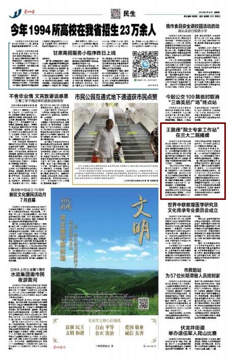 【兰州日报】王陇德“院士专家工作站”在兰大二院揭牌