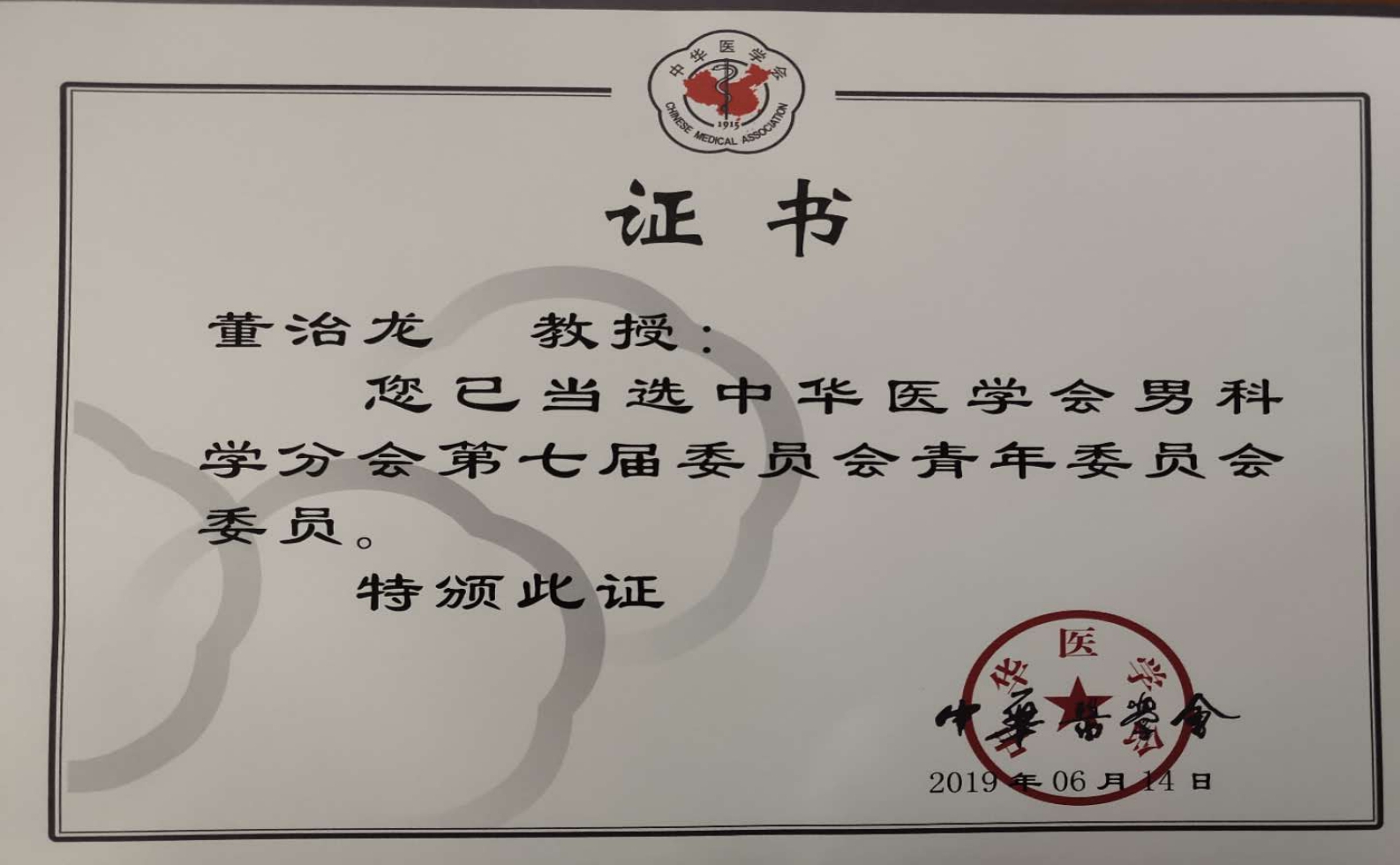日前,中华医学会男科学分会第七届全国委员会召开,我院泌尿外科董治龙主任医师当选为中华医学会男科学分会青年委员会委员。