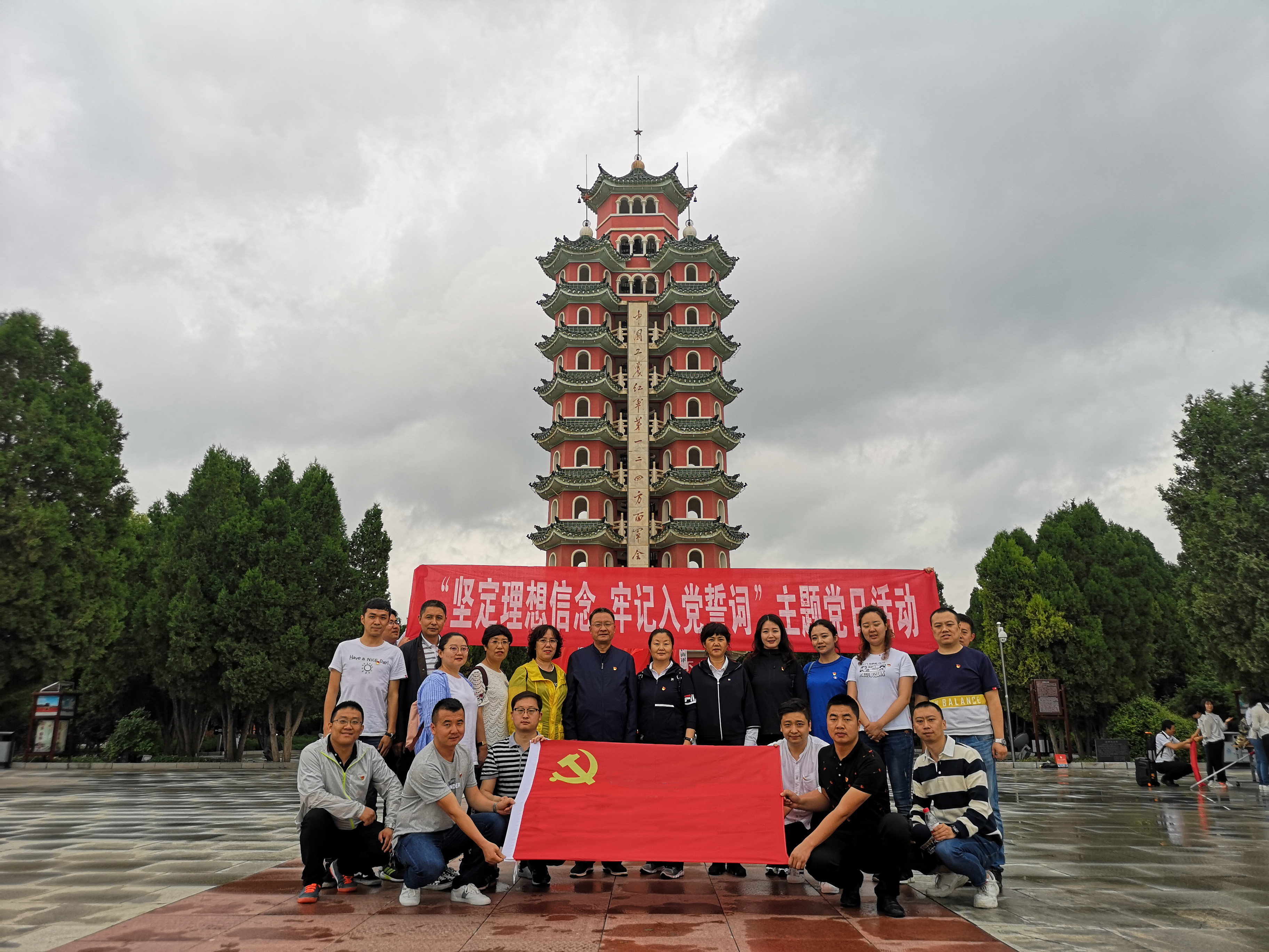 活动中,全体党员首先前往位于会宁县桃花山下的红军长征胜利景园。大家以延安宝塔为目的地,一路争先恐后,途径遵义会议旧址、泸定桥、腊子口、六盘山等革命景观,历时一个半小时走完整个“长征路”。通过亲身的体会,更加深刻的感受到了红军面对艰难困苦的大无畏英雄精神。