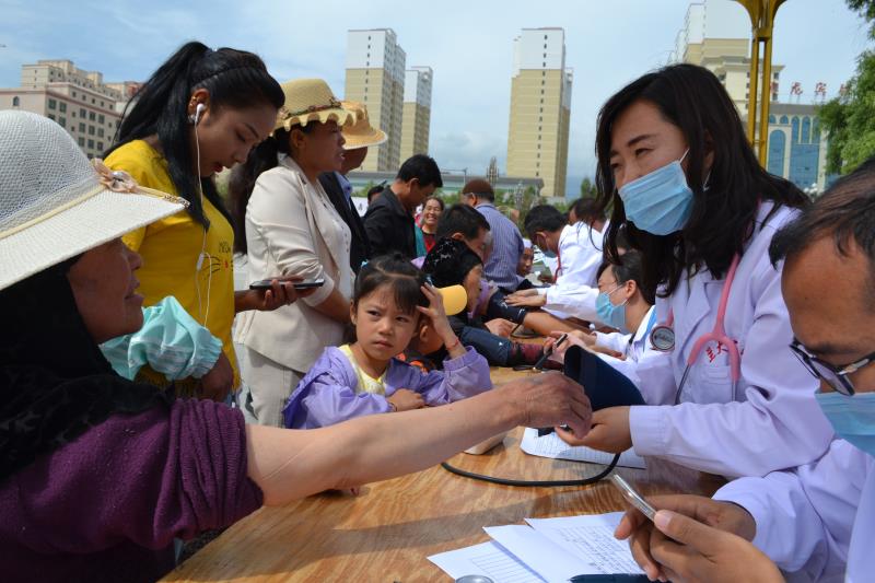 为庆祝中国共产党建党98周年,喜迎中华人民共和国成立70周年,推动居民健康促进工作的开展,增强居民关爱健康的意识,7月1日上午,我院“组团式”帮扶医疗队积石山县分队在积石山县大禹广场进行党员义诊活动。此次活动以宣传健康生活方式、宣传常见病及多发病的预防、测量血压血糖为主要内容,让医生走进群众,为广大人民群众提供便捷优质高效的诊疗服务。