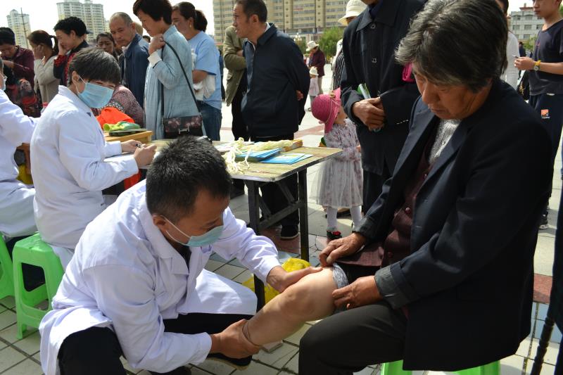 医疗队员们通过悬挂横幅、发放宣传手册和现场诊疗等方式,向来往的居民宣传健康常识以及国家基本医疗政策,并对居民进行血压、血糖、心跳等常规检查,针对每个居民的不同情况,队员们耐心地叮嘱他们各种日常注意事项,详细介绍防病和养生知识,提出合理的膳食、运动等生活指导。
